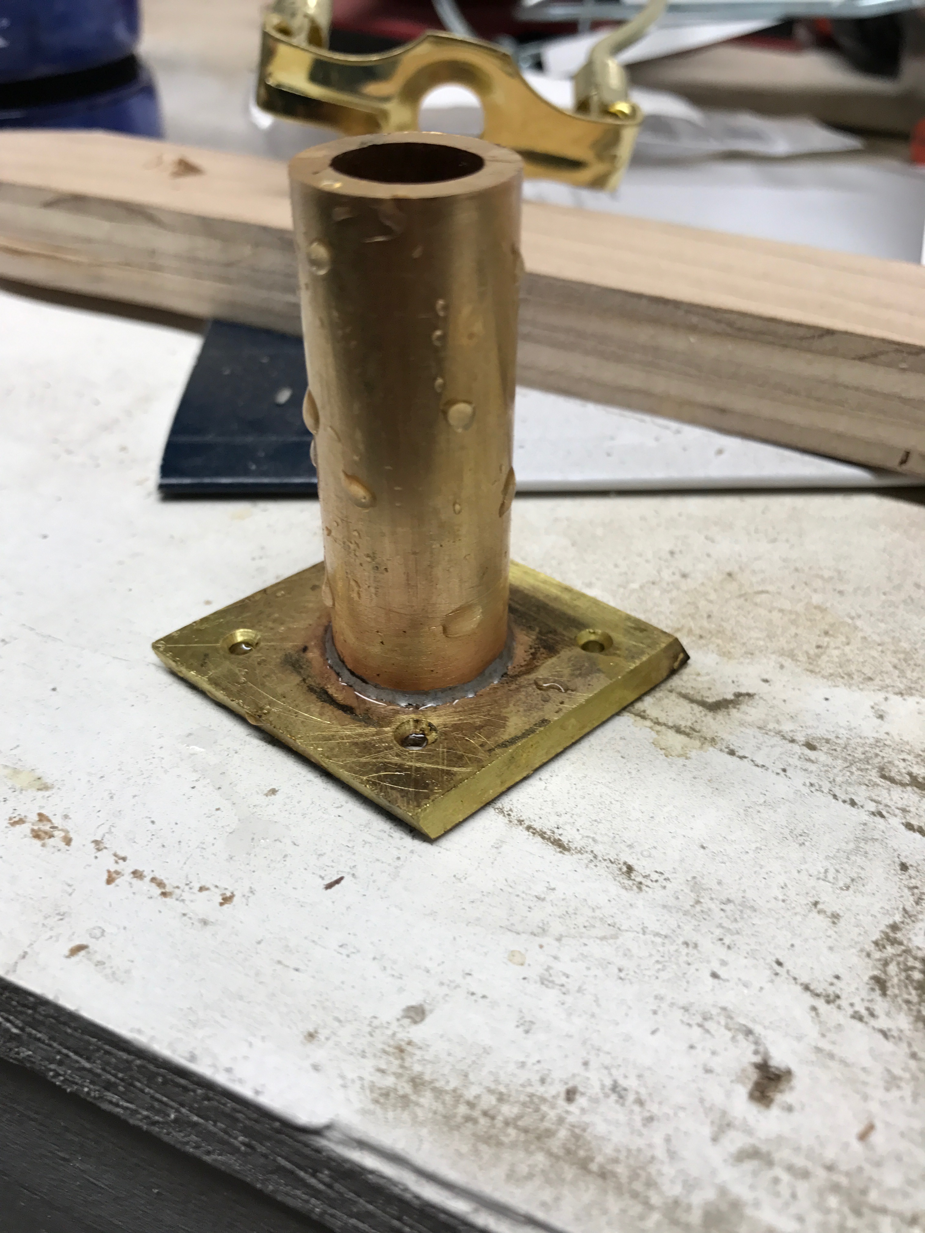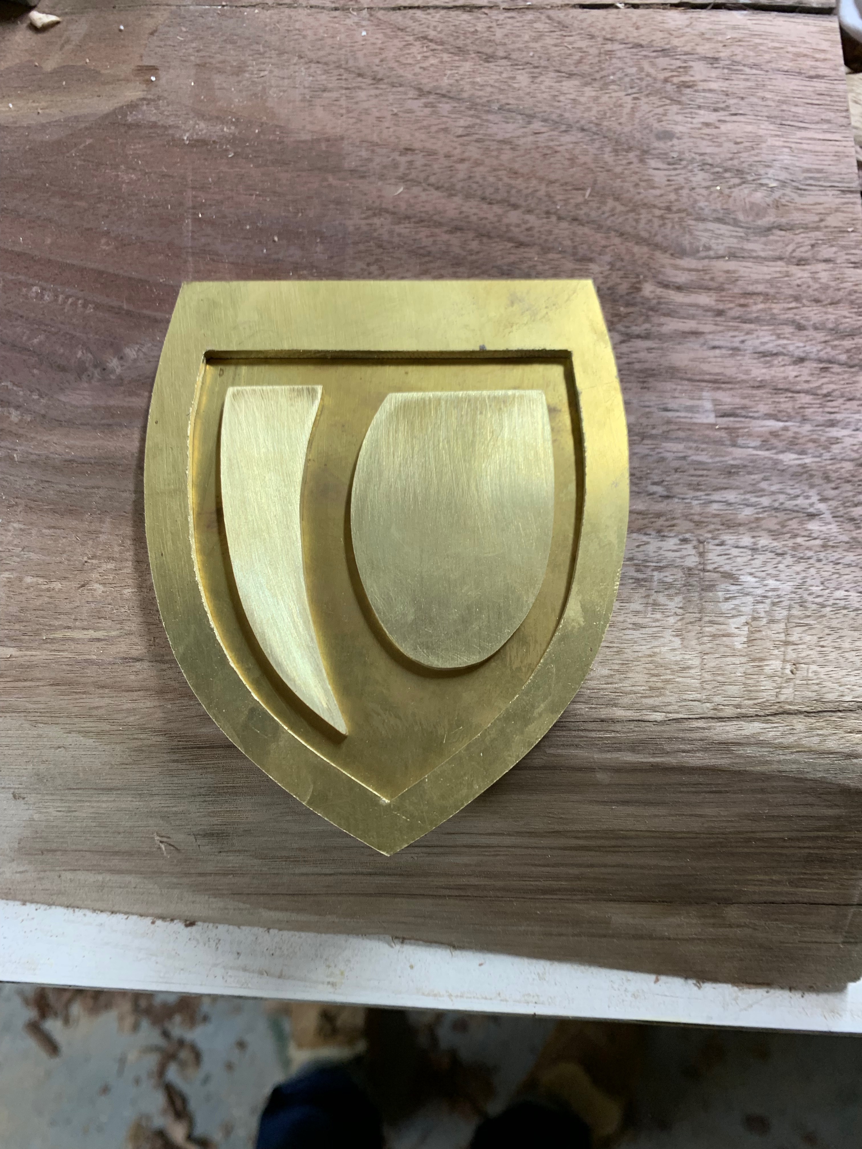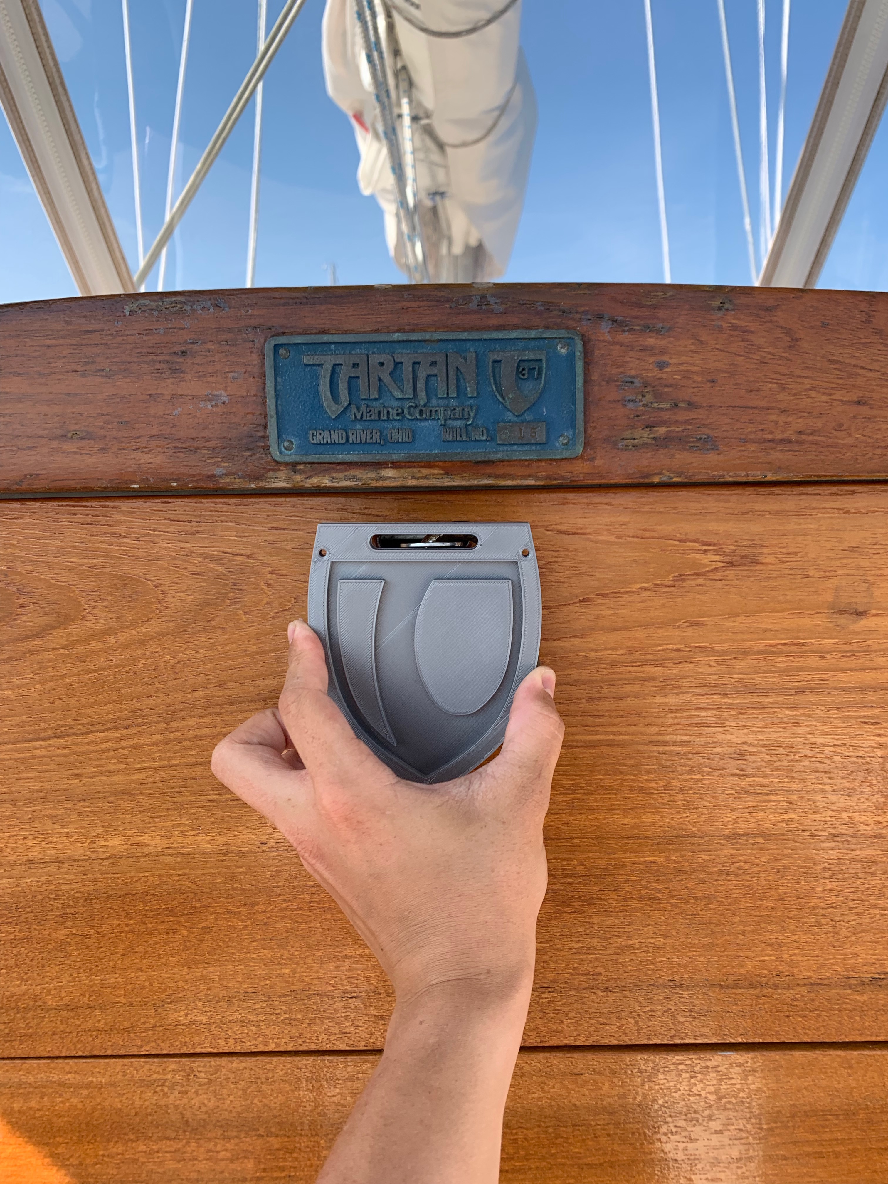 This brass plate was commissioned by a man with a very specific problem. He owned a sailboat with a companionway hatch that is secured by a padlock. The motion of the boat as it rocked on its mooring caused the padlock to rub up against the teak batten. The lock was slowly damaging the wood. I was asked to fabricate a piece of brass to sit between the lock and the wood. He also wanted the boat manufacturer’s logo included. After settling on a concept, I verified the fix with a 3D printed mockup and moved onto fabrication. The construction was done by sandwiching solder and flux between the two layers of brass. The top layer is the logo and the bottom layer is the ground. To accentuate the difference between the layers, the whole piece was polished to a mirror finish and then the top layer was knocked down to a brushed finished. I then clamped the two pieces together and heated them until the solder fused the two layers together. Since the installation, the piece has weathered in the salty environment and works perfectly.